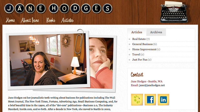 Jane needed a low-cost web site that would allow her to post the numerous magazine, newspaper, and online articles that she writes each month. We decided that a customized WordPress template would be just the thing.